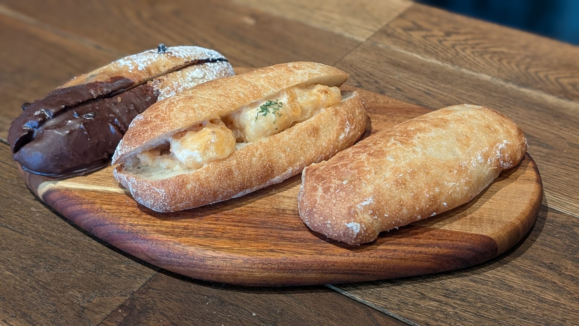 クロワッサン生地を渦巻き状にして焼き上げた、NY(ニューヨーク)クロワッサンは可愛く人気です♪※金曜日はイタリアのパン「チャバタ」販売の日。